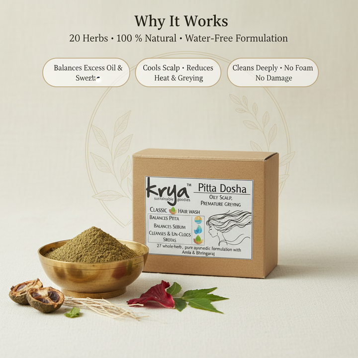 Ayurvedic Shampoo for Oily Scalp – Balances Excess Heat & Premature Greying | Krya Classic Hair Wash