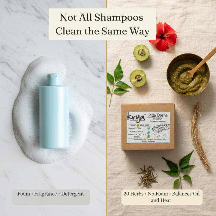 The Krya Classic Hair Wash is more than a cleanser. It is an Ayurvedic scalp-balancing treatment that: