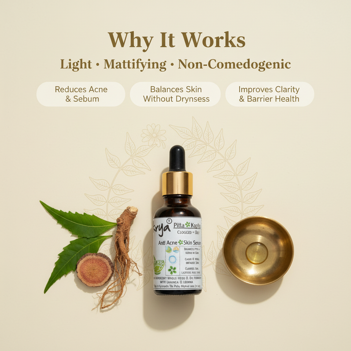 As the product is formulated for oily, acne-prone skin, the moisturization offered is extremely balanced. This will not suit dry skin which needs richer nourishment. The serum should also not be applied directly over ripe and new pimples or cystic acne, as any product can further inflame existing acne. Please go through our product tabs on how you should build an Ayurveda-friendly anti-acne skin routine.